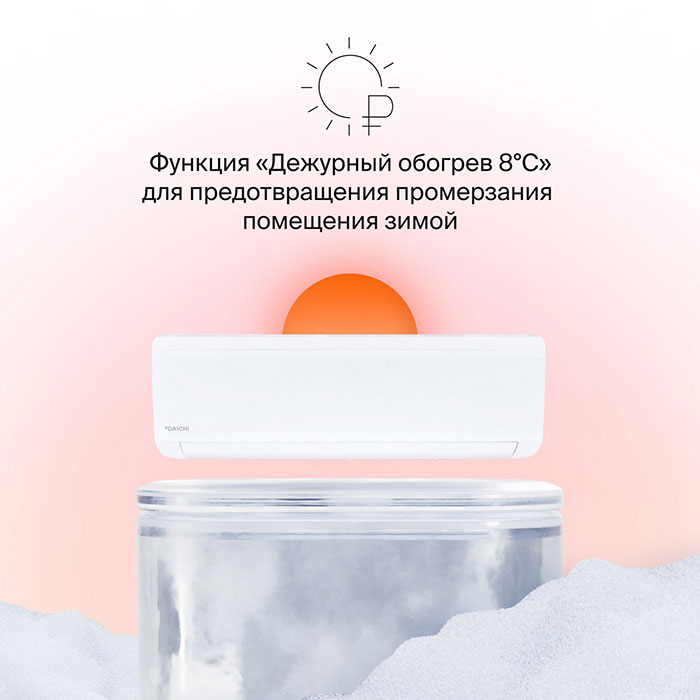 Настенные кондиционеры без инвертора Daichi серии Ice относятся к категории хорошее соотношение Класс энергоэффективности А. Хладагент R410А. Режим работы охлаждение и обогрев.Серия включает шесть комплектов для обслуживания комнат площадью от 22 до 85 кв.м.Функционал:- фотокаталитический фильтр (задерживает бактерии, вирусы, запахи)- сонFeelсоздает наиболее комфортные условия в месте нахождения человека- дежурный режим +8 С°,