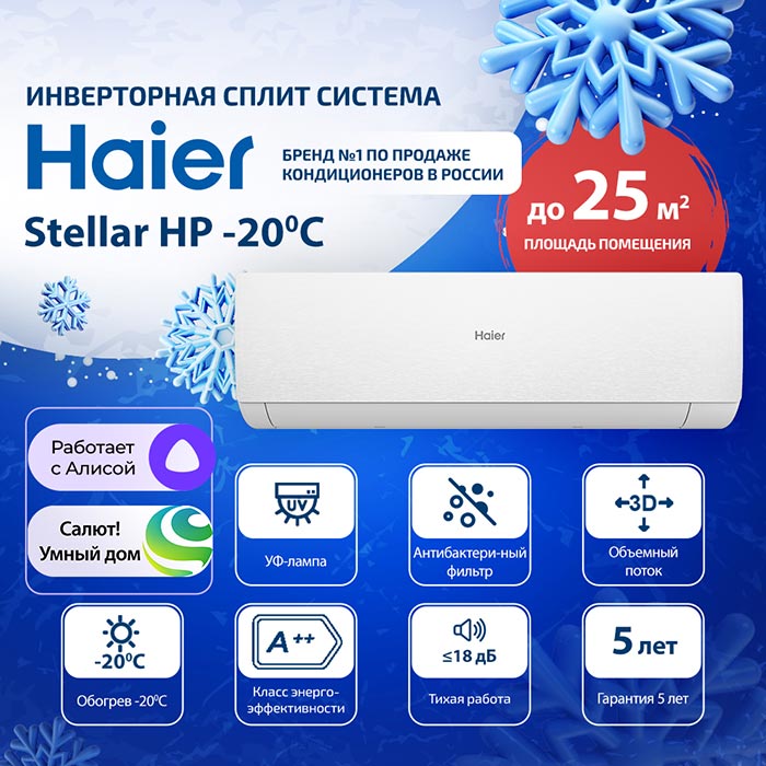 Артикул: Кондиционер Haier AS25SHP1HRA-W/ 1U25SHP1FRA Категория: Stellar HP